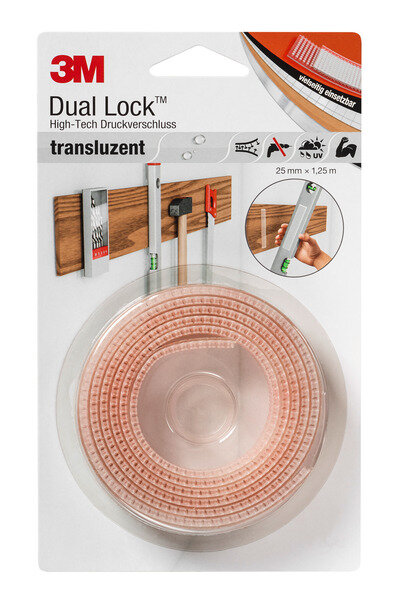In der Industrie wird das 3M(TM) Dual Lock(TM) Druckverschluss-System bereits seit Jahren von Profis erfolgreich eingesetzt. Der einkomponentige Druckverschluss lässt sich bis zu 1000 Mal öffnen und wieder schließen. 25 mm x 1,25 m. Selbstklebend. Für Innen- und Außenanwendungen. Für unsichtbare Befestigungen.