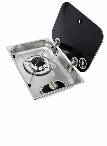 Kochfeld aus Edelstahl mit schwarzer Glasabdeckung – 1 SR-Brenner.