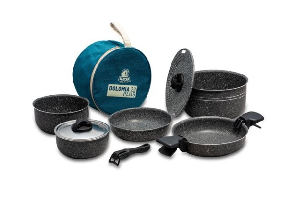 Kochgeschirrset BEAVER BRAND Dolomia 22 Plus, Aluminium Farbe stone grey mit Trageburse