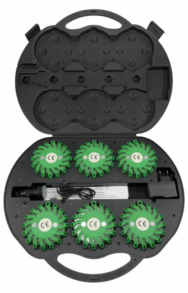 Koffer-Set mit 6 grünen LED Warnblitzern