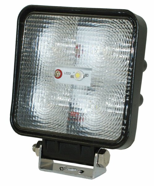 Spannung: 10 bis 30 Volt LED: Ja Lichtverteilung: Breitstrahler Lichtstrom: 1150 Lumen IP-Grad: 68 Form: eckig Länge: 110 mm Höhe: 110 mm Breite / Tiefe: 41 mm Anschluss: Kabel Anschluss Kabellänge: 450 mm Leistung (W): 15 Watt ADR / GGVS: Nein EMV: ECE-R10: Ja Strassenzulassung: Nein mit Schalter: Nein Lichtfarbe: 6000 Kelvin Zusatzinformation: 5 x 3 Watt LEDs 6’000K Montage via Gelenkfuss oder rückseitig mit 4x M4 Schrauben (Lochbild 88 x 23mm) für starres Lichtbild 110x110mm, 1150Lumen, IP68, 10-30V, 15W