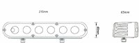 Spannung: 10 bis 30 Volt LED: Ja Lichtverteilung: Breitstrahler Lichtstrom: 2400 Lumen IP-Grad: 69 K Form: eckig Länge: 215 mm Höhe: 40 mm Breite / Tiefe: 65 mm Anschluss: Deutsch Stecker Leistung (W): 30 Watt Abstrahlwinkel: 55 Grad ADR / GGVS: Nein EMV: ECE-R10: Ja Strassenzulassung: Nein mit Schalter: Nein Vibration: 15,6 Grms Lichtfarbe: 6000 Kelvin Zusatzinformation: LED-Arbeitsscheinwerfer mit sehr hoher Vibrationsbeständigkeit, für direkte Auf-/Anbaumontage mittels 2 durchgehenden Schrauben (Lochabstand 106mm), Alu-Gehäuse mit Polycarbonat Linse. Deutsch-Steckdose auf der Rückseite. Inkl. vorverkabeltem Deutsch-Stecker, Dichtung, Schraubensatz mit 2Stk M6x 45mm Inbus-Schrauben aus rostfreiem Stahl mit Stopp-Muttern. E-Nummer: EMC 215x40mm, 2400Lumen, IP68, 10-30V, 30W