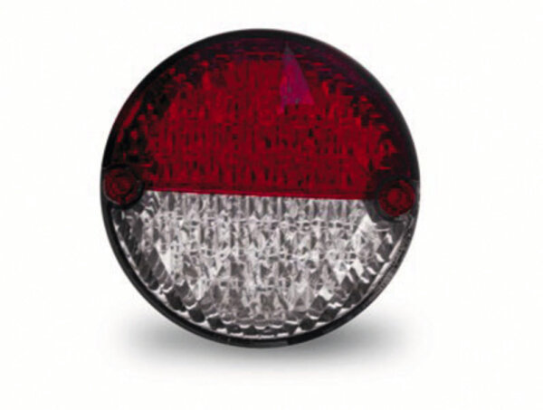 LED-Blink-Brems-Schlussleuchte Ø 95 mm, Zweifarbig: rot/klar. 12V, 5Watt mit 500 mm Kabel.