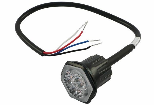 Lichtquelle: LED Lichtfarbe: Gelb Montageart: Festmontage / Aufbau Leuchten-Typ: Front-Heckwarnblitzer Spannung: 10 bis 30 Volt Stromversorgung: Festinstallation Anschluss Kabellänge: 300 mm Länge: 35 mm Breite / Tiefe: 30 mm Höhe: 31.5 mm Wasserdicht: Ja IP-Grad: 67 E-Nummer: XA1, E4-006677 ECE-R65-Zulassung: Ja Zusatzinformation: - 35 x 31.5 x 30 mm - Montageloch ø 25 mm - Wandstärke bis ca. 3 mm - 6 Power-LED - IP67 - 13 Blitzmuster (3 davon mit ECE R65 Zulassung, siehe Hinweis auf Schachtel) - synchronisierbar (auch abwechselnd) - rot: Plus - schwarz: Masse - blau: Wahl Blitzmuster oder Synchronisierung - weiss: Dimmfunktion - Wahl des Blitzmuster: blau mit schwarz kurz verbinden - Dimmfunktion: weiss mit schwarz verbinden Schwarz - neg. - blaue Kabel verbinden für Alternierend 35 x 31.5 x 30 mm / 10 - 30 V, IP67, 13 Blitzmuster