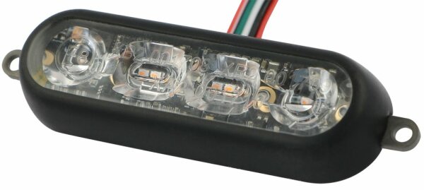 Lichtquelle: LED Lichtfarbe: Blau Montageart: Festmontage / Aufbau Leuchten-Typ: Front-Heckwarnblitzer Spannung: 9 bis 32 Volt Stromversorgung: Festinstallation Länge: 72 mm Breite / Tiefe: 23 mm Höhe: 10 mm Lochabstand: 79 mm Wasserdicht: Ja IP-Grad: 67 E-Nummer: XB2, E8-1710 ECE-R65-Zulassung: Klasse 2 Zusatzinformation: - Einsatztemperatur -40° C bis +65° C - seitliche Befestigung mittels Laschen ø 3 mm - 33 Möglichkeiten zum Programmieren durch Berührung des weissen Kabels an Masse (bitte Anleitung beachten) rot = Plus schwarz = Minus grün = synchronisation (grün zu grün) weiss kurz auf Minus halten= Blitzmodus einstellen rot/weiss = Plus, aber reduzierte Lichtleistung 72x23x10mm, 9-32V, 4 LED’s, seitliche Bef.