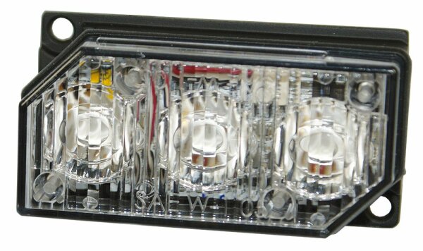 Lichtquelle: LED Lichtfarbe: Gelb Montageart: Festmontage / Aufbau Leuchten-Typ: Front-Heckwarnblitzer Spannung: 10 bis 30 Volt Stromversorgung: Festinstallation Länge: 64 mm Breite / Tiefe: 36 mm Höhe: 32 mm Wasserdicht: Ja E-Nummer: XA1, E9-1527 ECE-R65-Zulassung: Klasse 1 Zusatzinformation: 33 Möglichkeiten zum Programmieren durch Berührung des weissen Kabels an Masse (bitte Anleitung beachten) rot= +, sz = Masse, ws = zum Programmieren 64x36x32mm, 10-30V, 3 LED’s, E-Zulassung