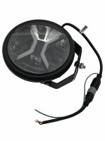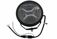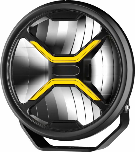 Dieser Zusatzscheinwerfer mit integriertem, dynamischem Positionslicht in X-Optik wertet den Anblick jedes Fahrzeuges dank seinem integrierten X-Standlicht nicht nur im öffentlichen Strassenverkerkehr auf. Das Standlicht kann auf Treffen oder abseits des öffentlichen Verkehrs auch in der Farbe gelb betrieben werden. Hierzu wird ein zusätzliches Kabel bestromt, schon geniesst man den Look wie auf Skandinaviens Strassen. Wer gerne Offroad unterwegs ist und die Nacht zum Tag macht, kann zudem für die volle Ausleuchtung den Offroad Modus aktivieren. Der Scheinwerfer ist robust und IP67 / 69K geprüft. Er ist ECE-homologiert gemäss R-149, R-148. Das neue, formschöne Design besticht auch ohne Fernlicht mit den modernen Positionslichtern und der schlichten Optik im klarglas Design. Technische Daten: - Referenzzahl 20 - Spannung 12/24 V, - Lichtverteilung 10-25° - Lichtstrom 11’000 Lumen / 5’700 lm Effektiv - Lichtfarbe 5’700 Kelvin - Leistungsaufnahme Fernlicht: 10 W - Strassenmodus Onroad - blaues Kabel 80 W - Offroad Modus - rotes Kabel - Aluminiumgehäuse pulverbeschichtet, Polycarbonat Linse - EMV ECE R-10 - Strassenzulassung Ja, ECE R-149, ECE R-148 - Anschluss Kabel 50 cm Stecker Deutsch, Gegenstück im Lieferumfang Anschlüsse: schwarz - Masse 31 blau - Zusatzfernlicht Strassenmodus rot - Zusatzfernlicht Offroadmodus weiss - Standlicht Strassenmodus gelb - Standlicht Showmodus (Offroad) ** Bitte die Einbau und Anschlussvorschriften gemäss StVo beachten. Der Betrieb des Scheinwerfers im Offroad Modus im öffentlichen Strassenverkehr ist verboten ** ø 220 x 80 mm, 11’000 Lumen, homologiert, Ref. 20