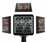 Beheizbarer LED-Hauptscheinwerfer mit Blinker für den Winterdienst - Einsatz auf Schneeräumungsfahrzeugen, Pistenfahrzeugen, etc. Mit Positions-, Abblend- & Fernlicht. Alle Funktionen E-geprüft; Neu mit automatischer Heizung, keine besondere Ansteuerung über Zusatzkabel mehr notwendig. • Aufbauversion, 2 Optionen • Blinker ist im Lieferumfang enthalten, aber nicht montiert. Er kann wahlweise links, rechts und oben montiert werden. Falls bereits einer vorhanden ist, kann der Blinker weggelassen werden. Technische Daten: • Standlicht: 3 W / 160 lm (theor.) • Abblendlicht: 24 W / 1’800 lm • Fernlicht: 48 W / 3’600 lm • Heizung: 22 W über Hauptlicht • Spannung: 12/24 V • Vibrationsstufe: - 15 G • Anschluss Deutsch mit Kabel und Gegenstück • Montage des Halters unten oder hinten möglich • Geschützt gegen Wasser und Staub IP 68 / IP69K • Homologation: R112/R7/R6, R10, EMV • Lebensdauer: > 50’000 h Anschlussplan: Schwarz: Masse Rot: Fernlicht Gelb: Abblendlicht Grau: Blinklicht Grün: Standlicht Lieferumfang: Hauptscheinwerfer, Blinker, Blinddeckel, Montagehalterung, Deutsch Gegenstück vormontiert mit ca. 20 cm Kabel Überarbeitet Version des bewährten HSB150 Hauptscheinwerfers welcher auf vielen Winterdienstfahrzeugen montiert und bewährt ist. 150 x 150 mm, Blinkermontage variabel, 9 - 30 V