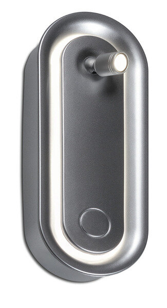 Als Einbau- und Aufbauleuchte verwendbar. Mit beweglichem Mini-Spot und indirekter Beleuchtung.3-Stufen-Schalter:EINSPOTAUSTechnische Daten:Material: KunststoffFarbe: SilberNennleistung: 0,4 W + 2,5 W (Spot)Energieeffizienzklasse: GMaße: L155 x B60 x H35 mm