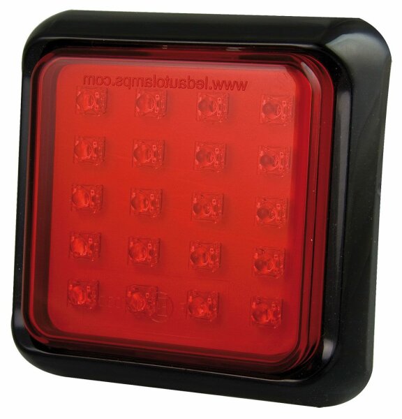 blau: Nebelschlussleuchte, weiss: Masse IP67 Garantie 5 Jahre 100 x 100 x 28 mm, Leuchte: 80 x 80 mm, IP67