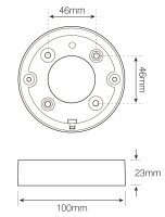 Abmessungen: ø 95 x 8 mm für Einbau / ø 95 x 31 mm für Aufbau, Lochabstand 80 mm