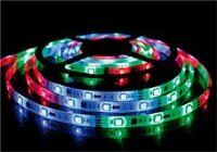 LED Streifen 10 mm breit, vergossen mit Silikon. Rollenlänge 5 m, individuell kürzbar (min. 10 cm) Montage per rückseitigem Klebestreifen 3M. Kann direkt (ohne Vorschaltgerät) an 12 V DC-Quellen angeschlossen werden. Betrieb jeweils mit einer Farbe, wahlweise; rot, grün oder blau (pro Farbe ein Kabelanschluss). Kabelschwanz 50 cm Anschluss: Spannungsversorgung: + 12 V - schwarz Farbwahl: Masse - rot, blau oder grün Es kann immer nur eine Farbe gewählt, das heisst ein Kabel bestromt werden. Für Anwendungen im Innen- oder geschützten Aussenbereich. Rollenlänge 5 m, alle 10 cm trennbar