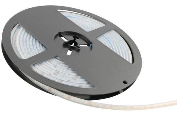 LED Leuchtstreifen 5 mm breit und 5 m lang. - Individuell kürzbar alle 2.5 cm - Schutzklasse IP65 ungekürzt, wenn der Streifen gekürzt wird muss die Schnittstelle mit einem geeigneten Dichtmittel (Silikon) abgedichtet werden um die Dichtigkeit wiederherzustellen. - Rollenlänge 5 m, individuell kürzbar (2.5 cm) - Montage per rückseitigem Klebestreifen - Direkt (ohne Vorschaltgerät) an 12 V DC Quellen anschliessen. Bei Spannungen über 12.8 V wird ein Spannungskonstanthalter empfohlen (Gefahr von LED defekten). Mit 20 cm Kabelschwanz. Max. 5m mit einer Einspeisung. Für Anwendungen im Innen.- oder Aussenbereich IP65. Rollenlänge 5 m, alle 2.5 cm trennbar, 5 mm breit