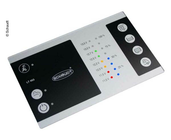 The LT 453 LED panel can be used together with an EBL 208 S and EBL 211.Further specifications:Display via LEDsVoltage display in 8 levels for living area and starter batteryVisual battery alarm in the event of a sharp drop in battery voltageTank level indicator in 4 stages for two water tanks12 V main switch with switch-on control230 V mains controlPump switch with switch-on control