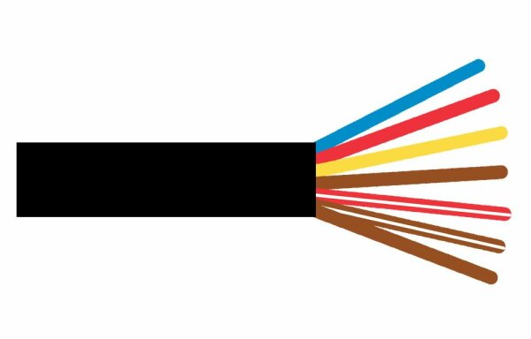 1.0 mm2: blau, braun, gelb 6.0 mm2: rot, rot/weiss, braun, braun/weiss Ganze Rolle = 50 m 1.0 mm2: bl, br, ge / 6.0 mm2: rt, rt/ws, br, br/ws