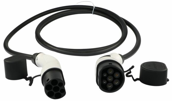 Typ 2 Ladekabel für die Ladung von Elektro-Fahrzeugen mit Typ 2 Steckdosen an festinstallierten Ladestationen (Mode 3) mit Typ 2 Steckdosen (IEC 62196). Sehr robustes, flammwidriges Kabel mit Typ 2-Stecker und -Kupplung (Stecker und Kupplung geschraubt). Die Ladung kann 1-phasig (230V) oder 3-phasig (400V) erfolgen. Kabelbelegung: 5x 2.5mm2 2x 0.5mm2 für Mode 3 Ladestationen Typ 2 --> Typ 2