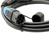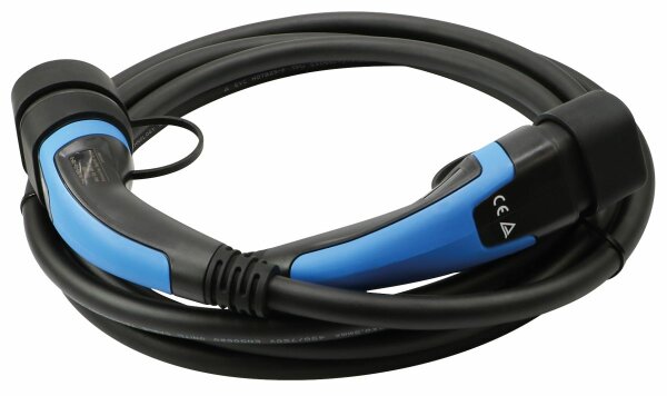Typ 2 Ladekabel für die Ladung von Elektro-Fahrzeugen mit Typ 2 Steckdosen an festinstallierten Ladestationen (Mode 3) mit Typ 2 Steckdosen (IEC 62196). Sehr robustes, flammwidriges Kabel (22 kW 450/750 V) mit geschraubten Typ 2-Stecker und -Kupplung. Die Ladung kann 1-phasig (230 VAC) oder 3-phasig (480 VAC) erfolgen. Kabelbelegung: 5 x 6.0 mm2 2 x 0.5 mm2 für Mode 3 Ladestationen Typ 2 --> Typ 2
