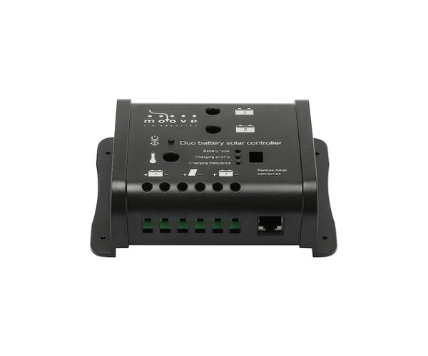 Laderegler PVM 20A für zwei Batterien.  Max. Eingang 350 W / 20 A - kann mit 2 Module und 2 Batterien verwendet werden.