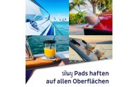 Sturdy, unbreakable magnetic glasses made of scratch-resistant plastic. Magnet integrated in the bottom of the cup. The metallic nano gel pads are washable, removable without residue and reusable. The silwy metal strip is required for stowage on the wall/ceiling.