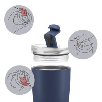 Im Boden des Thermocups ist ein Magnet integriert. Damit der Becher während der Fahrt an Ort und Stelle bleibt, muss er mit einem metallischen Gegenpol kombiniert werden. Im Set ist hierfür ein Metall-Nano-Gel-Pad inklusive. Das Kraftverhältnis zwischen dem Magnet-Thermobecher und dem Metall-Nano-Gel-Pad ist perfekt ausbalanciert, sodass der Cup einerseits durch das Pad fixiert, andererseits aber auch leicht zum Trinken von dem Pad abgenommen werden kann. Das Pad kann dank smarter Nano-Gel-Technologie jederzeit rückstandslos entfernt, mit klarem Wasser gereinigt und beliebig oft wiederverwendet werden. So bist du maximal flexibel und kannst deinen Magnet-Cup immer dort nutzen, wo du ihn gerade brauchst oder klapperfrei und standsicher im Schrank verstauen.Der Edelstahl-Cup ist dank des Fliplids zu 100% dicht. Zudem wird durch eine doppelwandige Vakuumschicht das Austreten von Wärme und Kälte verhindert - dein Getränk bleibt also bis zu 3 h heiß oder gekühlt. Das macht den Cup perfekt für unterwegs.Weitere Informationen:Inhalt: 350mlHöhe: 14,2 cmØ 8,4cmFarbe: Türkis