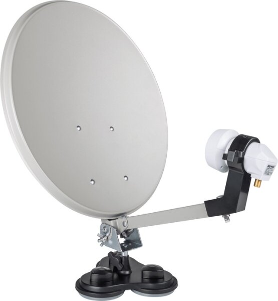 Der Campingkoffer beinhaltet in der HD-Version einen Satelliten-Spiegel inkl. verschiedener Befestigungsmöglichkeiten, einen robusten Transportkoffer, 10m Koaxialkabel, ein Single-LNB und einen HD-Receiver. Der Megasat Campingkoffer besteht aus einem robusten und stoßfesten Kunststoff. In der Standard-Ausführung befindet sich im Lieferumfang ein 41 x 38 cm Satellitenspiegel sowie verschiedene Befestigungsmöglichkeiten. Der Saugfuß garantiert eine feste und sichere Montage des Spiegels auf allen glatten Oberflächen. Kann der Saugfuß nicht angebracht werden, kann der Standfuß oder die Masthalterung zur Befestigung genutzt werden.