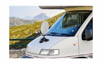 Der flexibel nutzbare 3-fach Saugfuß garantiert eine extrem feste und stabile Oberfläche auf allen glatten Oberflächen (z. B. auf einem Tisch oder an der Wand des Wohnmobils) und ist dabei noch platzsparend.
