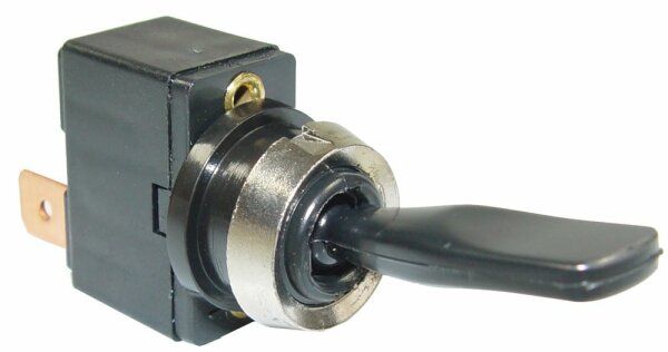 Schalterform: Kippschalter Funktion mechanisch: rastend Funktion elektrisch: Schliesser Spannung: 12 bis 24 Volt Belastbarkeit: 6 Ampère Einbauloch: rund Durchmesser: 12.5 mm Beleuchtung: Nein Wasserdicht: Nein Zusatzinformation: Flachsteckanschlüsse 0 - 1 / ø12mm