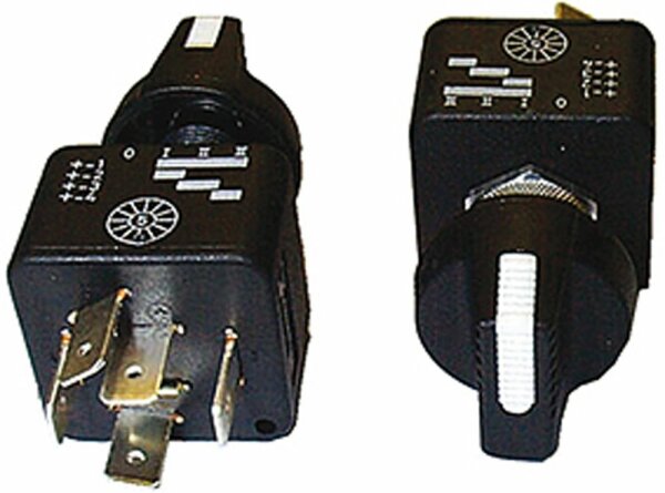 Schalterform: Drehschalter Funktion mechanisch: rastend Funktion elektrisch: Mehrstufig Spannung: 12 bis 24 Volt Belastbarkeit: 23 Ampère Einbauloch: rund Länge: 30 mm Breite / Tiefe: 30 mm Höhe: 23 mm Durchmesser: 12 mm Beleuchtung: Nein Wasserdicht: Nein IP-Grad: 53 Zusatzinformation: Venti: 280W, Lampenlast: 350W 0 - 1 - 2 - 3