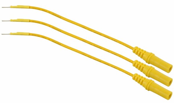 1 Satz mit 3 Stück Messleitung Flachstecker • Steckerart: Zunge männlich Breite 0.8 mm • Farbe: gelb • Länge 18 cm • Bananenbuchse auf der Gegenseite øi = 4 mm Set à 3 Stück, gelb zu MKSort