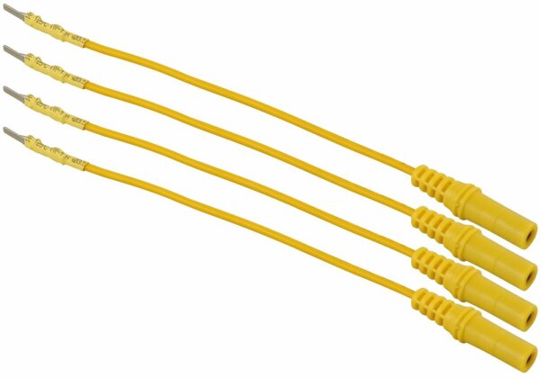 1 Satz mit 4 Stück Messleitung Flachstecker • Steckerart: Zunge männlich Breite 3.0 mm • Farbe: gelb • Länge 18 cm • Bananenbuchse auf der Gegenseite øi = 4 mm Set à 4 Stück, gelb zu MKSort