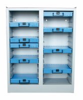 Metallschrank für 28 Sortimentskästen Korpus silbergrau mit gummierter Ablagefläche (schwarz) - ohne Sortimentskästen hochwertige, professionelle Verarbeitung auch für Wandmontage geeignet Sortimente-Schrank