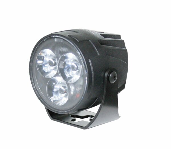Sehr kleiner, leistungsstarker und E-geprüfter Fernscheinwerfer mit 3 Power-LEDs (à 8 Watt) in einem matt-schwarzen Aluminium-Gehäuse mit runder Linse, eingefasst in eine stabile Halterung aus Stahl. Die LED-Technik und der verwendete Einsatz erzeugen ein symmetrisches, helles Licht für eine optimale Wahrnehmung. Empfohlen für Kleinfahrzeuge, Golf Caddies, Motorräder, etc. Achtung: Der Scheinwerfer darf nicht ohne die mitgelieferte schwarze Elektronikbox (Grösse 44 x 22 x 10 mm) angeschlossen werden! *** Keine R-10 / EMV Prüfung. Können in ungünstigen Fällen Radio Empfang stören. *** ø 50 mm, 12 V, E-geprüft, 800 lm
