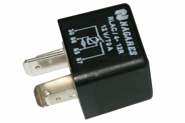 Relaisform: Hochleistungsrelais Schaltfunktion: Schliesser Spannung: 12 V Leistung Arbeitskontakt: 70 Ampère Leistung maximal: 70 Ampère Halter: Nein Parallelwiderstand: Ja Löschdiode: Nein Sicherung: Nein Anschluss 30 seitlich: Nein Dauerstrom: Ja Wasserdicht: Nein 0 - 1 *mit Widerstand*