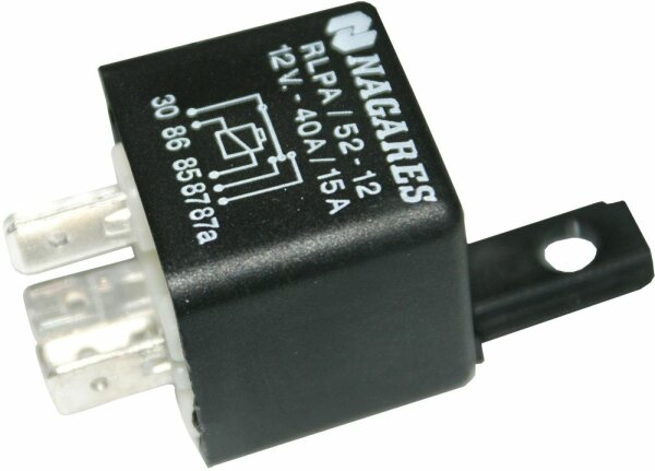 Relaisform: Minirelais Schaltfunktion: Wechsler / Öffner Spannung: 12 V Leistung Arbeitskontakt: 40 Ampère Leistung Ruhekontakt: 15 Ampère Halter: Ja Parallelwiderstand: Nein Löschdiode: Nein Sicherung: Nein Anschluss 30 seitlich: Ja Dauerstrom: Ja Wasserdicht: Nein 1 - 2 / 12V 40/15A Kontakt 30 seitlich