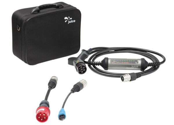 Der Juice Booster 2 ist eine universelle mobile Ladestation (Reiseladegerät) für ALLE Elektro-Fahrzeuge mit Typ 2 Steckdose - INKLUSIVE Renault Zoe! Anschluss an allen Steckdosen möglich; der Ladestrom wird jeweils automatisch der entsprechenden Steckdose angepasst und beträgt max. 32 A (400 V). Lieferung standardmässig mit 2 Adapterkabeln (1x T12 (CH, 10 A) & 1x CEE32 Stecker). Einfachste Bedienung: Passenden Adapter aufstecken und los. Mit dem Juice Booster 2 laden Sie an jeder Dose in Europa automatisch richtig und maximal schnell. Kleinste und sicherste mobile 22 kW Ladestation!