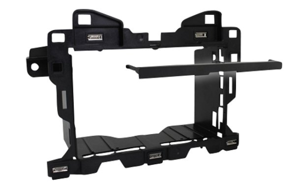 Radiohalterung innen mit 3-Lock Zier-Abdeckung vorne, schwarz. Für Montage des ZENEC Z-N956 im Mercedes-Benz Sprinter III mit Radiovorbereitung.