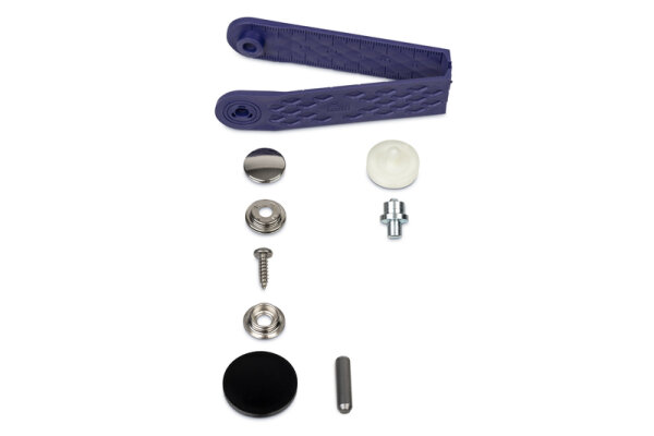 Ein Druckknopf hat sich an einer Eckbank oder an Deinem Wohnwagen gelöst? Kein Problem! Diese Druckknöpfe aus der Serie „Yacht & Caravan“ sind sehr belastbare und robuste Knöpfe, die meistens im Freizeitbereich eingesetzt werden. Sie sind außerdem witterungsbeständig, was sie unverzichtbar im Camping- und Bootsbereich macht. Das Werkzeug zur Befestigung ist in der Verpackung enthalten und kann ganz einfach mitgenommen werden. Die untere Seite des Druckknopfes wird mit Hilfe einer Schraube an Holz oder ähnlichem Material befestigt. Die silberfarbenen Druckknöpfe haben einen Durchmesser von 15 mm.