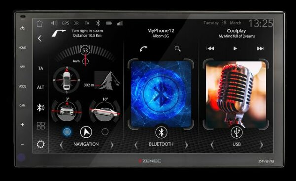 Aufgrund des modernen Bedienkonzepts, bei dem drei Quellen parallel dargestellt werden, haben Sie alle wichtigen Infos im Überblick. Der Z-N976 verbindet sich per WLAN kabellos mit Ihrem Smartphone. Telefonieren, navigieren oder einfach Musik und Podcasts hören - für eine besonders sichere Bedienung ist gesorgt.