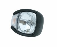 Nordic N500 Hauptscheinwerfer H4 mit Blinker, rechts. Mit 12 V Glühlampen bestückt. Verstellbare Befestigung im Hinterteil der Lampe, Gehäuse aus glasfaserverstärktem Kunststoff, Anschluss für Deutsch-Stecker. MADE IN FINLAND Pin-Belegung: 1: blau - Blinker 2: schwarz - Masse 3: braun - 58 4: grün - 56a Fernlicht 5: leer 6: rot - 56b Abblendlicht 230 x 160 x 150 mm, Halogen mit Blinker