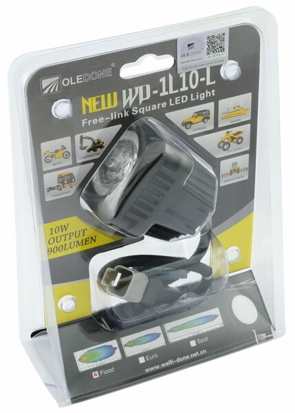 Spannung: 9 bis 50 Volt LED: Ja Lichtscheibe beheizbar: Nein Lichtverteilung: Breitstrahler Lichtstrom: 900 Lumen IP-Grad: 68 Form: eckig Länge: 55 mm Höhe: 55 mm Breite / Tiefe: 70 mm Anschluss: Deutsch Stecker Anschluss Kabellänge: 250 mm Leistung (W): 10 Watt Abstrahlwinkel: 60 Grad ADR / GGVS: Nein EMV: ECE-R10: Ja Strassenzulassung: Nein mit Schalter: Nein Lichtfarbe: 6000 Kelvin Zusatzinformation: Mini Offroad Leuchte für Motorräder, Quad, Forstwesen, PKW/LKW, Landwirtschaft, etc. 900 Lumen 10 W Cree LED 6000 K Polycarbonat Linse Deutsch Stecker (Gegenstück im Lieferumfang) Anschlusskabel 25 cm 55 x 55 x 70 mm, 900 Lumen, IP68, 9 -50 V, 10 W, Breitstrahler