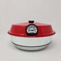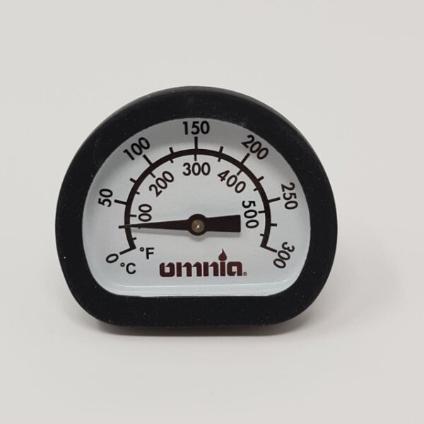 Das OMNIA Thermometer für Campingbackofen-Thermometer lässt sich aber auch einfach mit der beiliegenden Befestigungsschraube im Loch des Deckels befestigen. Beachte, dass dann nur die Temperatur im oberen Teil des Ofens gemessen wird. Die Temperatur im unteren Teil ist höher. Mit dem Thermometer im Deckel verändert sich der Schwerpunkt. Hebe deshalb den Deckel vorsichtig an.