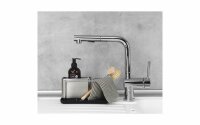 Grâce à la répartition claire du porte-ustensiles, nous vous facilitons la tâche fastidieuse de la vaisselle : La barre intégrée offre suffisamment de place pour sécher et ranger le torchon à vaisselle. Le produit vaisselle trouve une place fixe dans le récipient