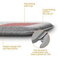 Ein flaches Sitzheizkissen Rücklehne in kompakter Größe (50 x 40 cm) mit einer weichen Filz-Oberfläche. Dank der mitgelieferten Powerbank ist es kabellos anwendbar - perfekt geeignet für den Einsatz im Innen- und Außenbereich.Weitere Spezifikationen:Stromversorgung: PowerbankLeistung: 10 WattLadezeit: 3 Std.Nutzungszeit: 1,5 - 2 Std.<iframe width="560" height="315" data-cb-src="https://www.youtube-nocookie.com/embed/_1HHG6WwIJE" title="YouTube video player" frameborder="0" allow="accelerometer; autoplay; clipboard-write; encrypted-media; gyroscope; picture-in-picture; web-share" allowfullscreen></iframe>