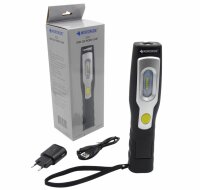 - Li-Ion Batterien - Doppelte Lebensdauer!!! - 350 Lumen (helle und homogene Ausleuchtung) - mit Frontstrahler - flexibler Halter am Griffende mit Magnet - 2 Magnethalter und 2 Haken - IP20, stossfest Fallhöhe 1 m - Brenndauer 3h, Ladedauer 3 - 4 h - 230 VAC & KFZ Ladegerät 12 VDC Li-Ion-Batterie (3.7 V 2’100 mAh), 350 Lumen