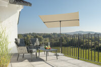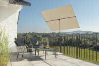 Discover a versatile all-rounder with our Avellino balcony parasol, which not only beautifies your balcony, but is also ideal for your garden or patio. The anthracite grey powder-coated frame is not only visually appealing, but also offers a range of functions that will make your summer days even more enjoyable. Thanks to its height adjustment and sideways movement, the sunshade can be flexibly adapted to your needs. The cover can also be rotated and swivelled in all directions to provide the perfect shade. The Avellino is the flexible solution for enjoying the lightness of summer.