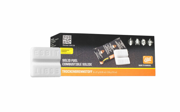 8x27g de pastilles de combustible sec, emballées de manière fiable, sous blister de trois barres, fonctionnent de manière fiable et peuvent être utilisées de manière polyvalente.