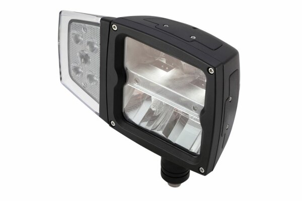 Phare principal à LED chauffant avec clignotant pour le service hivernal – utilisation sur les engins de déneigement, les dameuses, etc. Avec feu de position, feu de croisement et feu de route. Toutes les fonctions respectent les normes européennes. - Version de montage en saillie - Le clignotant est compris dans la livraison mais n’est pas monté; il peut être monté au choix à gauche, à droite ou en hauteur, ou être retiré (s’il y en a déjà un) - 12 V et 24 V, 20/38 W - Classe de protection: IP69K - Température de couleur: 5’000 K (blanc neutre) - Câble de raccordement de 300 mm avec prise Deutsch (6 pôles) - Prise Deutsch (6 pôles) précablée avec 100 mm de câble incluse - Montage du support possible en bas ou à l’arrière - Feu de route: 38 W, 3’600 lm / 3’060 lm effectifs - Feu de croisement: 20 W, 1’800 lm / 1’530 lm effectifs - Chauffage: 24 W 150 x 150 mm, montage du clignotant variable, 10 - 30 V