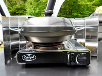 Le Barbecue le Pop est une nouvelle idée d' après le principe des pots encastrables et qui est de plus aussi satisfaisant en matière pratique qu'au niveau de la santé avec une cuisson sans matières grasses. Le Barbecue Pop se compose de 4 éléments uniques : le Barbecue de 32cm avec la grille, le pot pour le four et le couvercle. Il se compose d' aluminium 99,5 et dispose d'un fond renforcé visant une meilleure distribution de la chaleur ainsi que des poignées dorées. Grâce au revêtement Casco Nobel Gliss l'hygiène et une longue durée de vie sont garanties. Approprié pour des cuisinières électriques et à gaz. Passe au lave-vaisselle