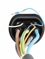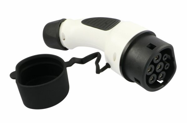 Fiche type 2 / 32A 240/415 VAC femelle, avec capuchon sans déverrouillage mécanique, 4 vis avec vis Torx, avec décharge de traction et presse-étoupe Courant: 32A 3P + N + PE 2 contacts 2A <30V Soudable ou sertissable Résistance d'isolement: 500MΩ Résistance de contact: 0,055 ± 0,005Ω Classe IP: IP54 Tension d'essai: 2000V Connexions / sections de câbles: 5x 6 mm2 et 2x 0,5 mm2 Boîtier: plastique (UL94 VO non inflammable) Contacts à broches: alliage de cuivre, nickelé Joint: silicone Force d'accouplement: ≤80N Cycles d'accouplement: ≥10000 Température de fonctionnement: -30 ℃ à 60 ℃ CE IEC62196-2 femelle, Contacts soudables ou sertissables