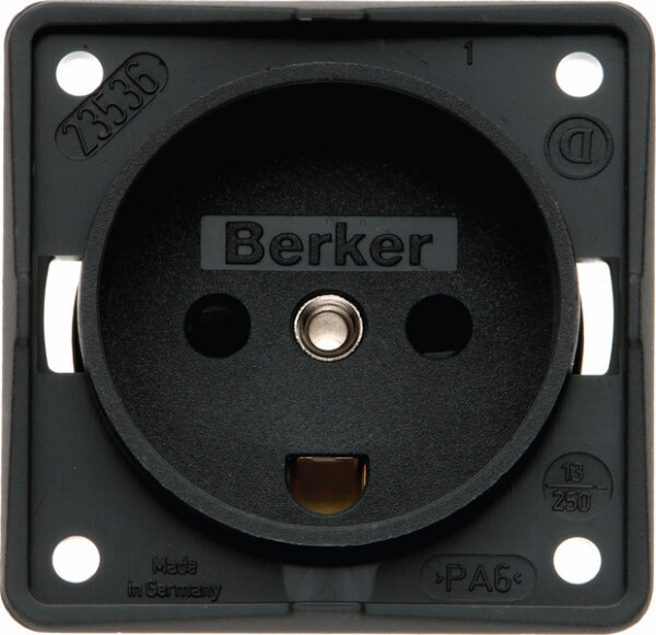 Prise de courant 230V anthracite mat avec panneau arrière surélevé. Protection contre les contacts accidentels, conception pour le Danemark. Bornes à vis pour le montage des câbles.